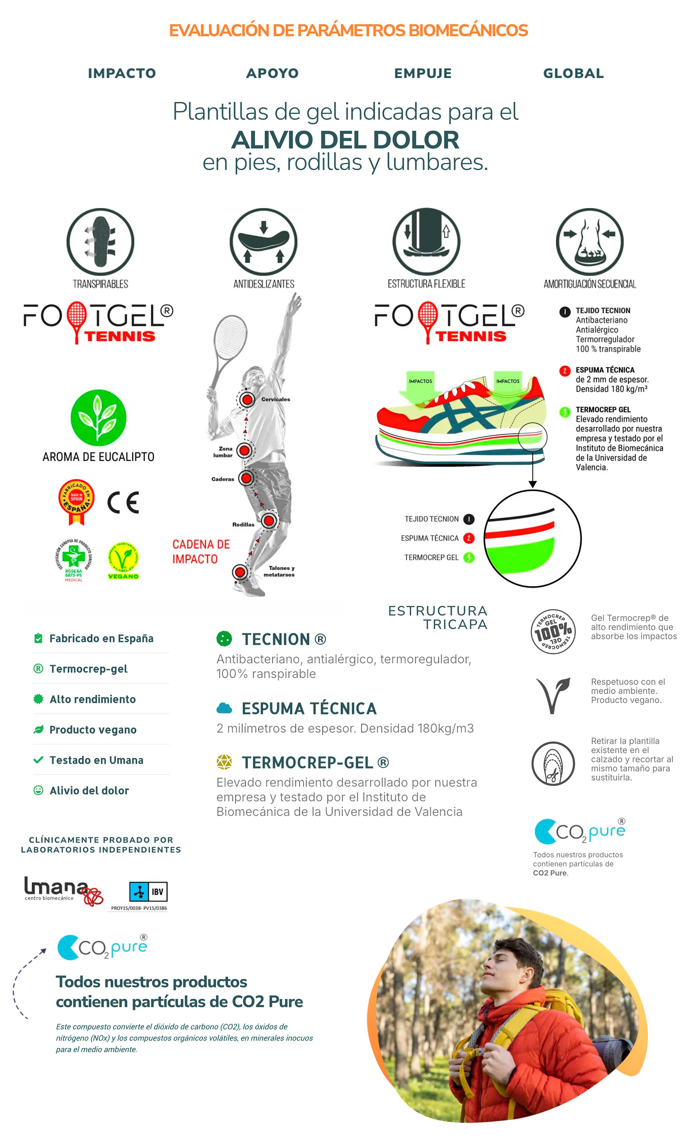 Footgel Plantilla Calzado Tenis. Las plantillas FOOTGEL TENNIS están especialmente recomendadas para la práctica del Tenis por su alta absorción de impactos y protección que ofrecen. Su TRIPLE CAPA ÚNICA y EXCLUSIVA ha sido desarollada para este objetivo. Testeado por el Centro de Análisis Biomecánico Umana, GARANTÍA y CALIDAD